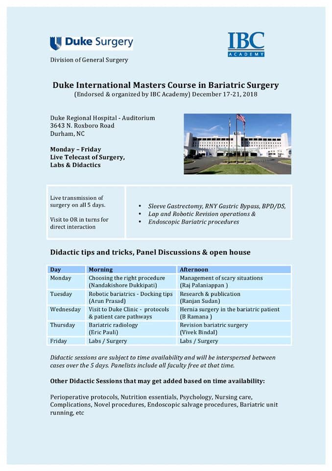 Duke International Masters Course in Bariatric Surgery