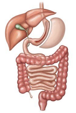 In this restricive procedure, the capacity of stomach is reduced to approximately 100ml, so the patient feels full early during a meal. It also shifts the hormonal balance so he/she feels less hungry between meals.